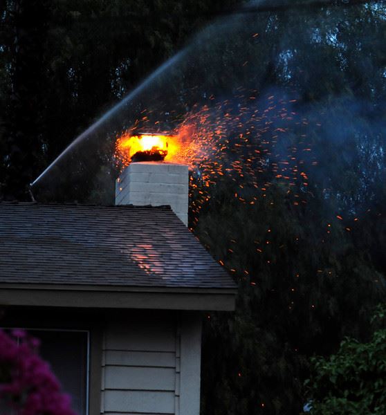 видим дымовую трубу после возгорания в ней сажи