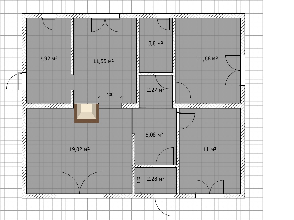 Здравствуйте!Достраиваю коробку. Летом планирую класть печь. Не могу определиться с проектом и расположением. Хотелки: стеклянная дверца (большая не нужна),летний ход, возможность топить с открытой топкой, хлебная камера. И при этом простую в кладке и проверенную в работе. Планировку прилагаю. Если располагать, как на рисунке, хотелось бы по ширине не выходить за 4,5 кирпича, иначе проход будет меньше метра. Расчётные теплопотери порядка 80Вт/м.кв. Задача отопить зал и кухню. Посоветуйте что-нибудь.