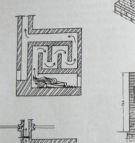 Вот нашел в интернете похожую по конструкции печку. Правда задвижка здесь не обозначена, а внутренности похожи. И главная прочистка в самой трубе. Но у меня там от трубы до стенки не более 40-50 см. И если честно, туда не заглядывал. Может там и есть тот самый кирпичик.