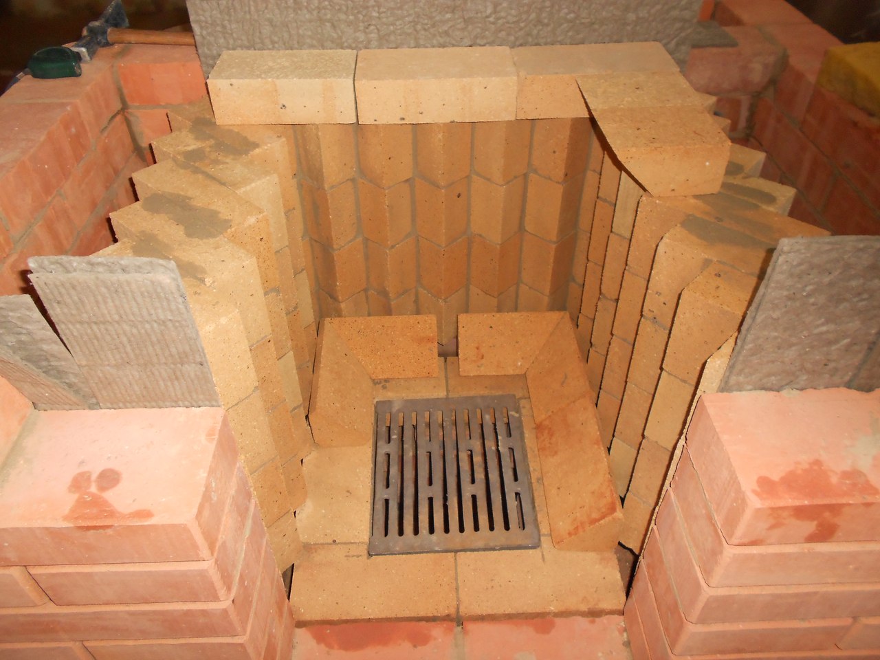 На сколько я, как дилетант, понимаю, значительное преимущество топливника с откосами перед плоским дном заключается в том, что угли сами скатываются на решетку, что наделяет такой топливник "функцией автоподачи" углей для догорания.