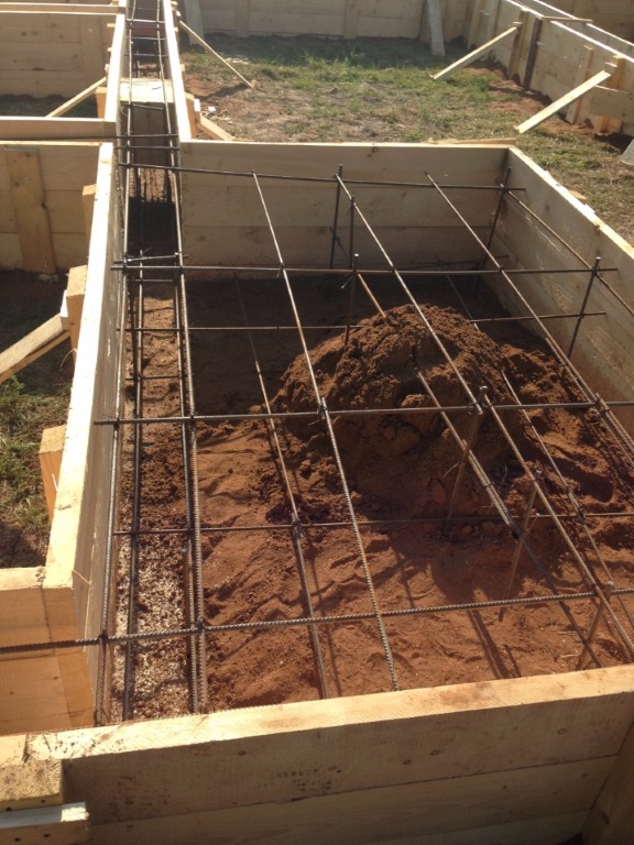 В виду недостатка опыта и знаний, строителями был заложен связанный с основной лентой фундамента блок фундамента под печь размером 2,65 x 1,60 (связан арматурой в три уровня).