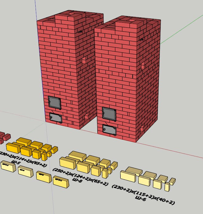 У одной печи прочистные слева неудобно расположены у меня она см 25 от стены стоит, трудно прочищать будет... , а у второй надо будет 2-4 ряда выкинуть