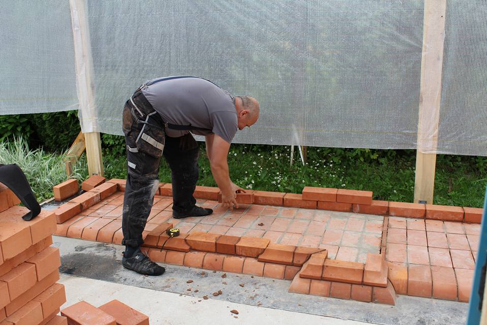 Точки предстоит не мало, поэтому первым делом начали обустройство площадки и мини-цеха по обработке кирпича.