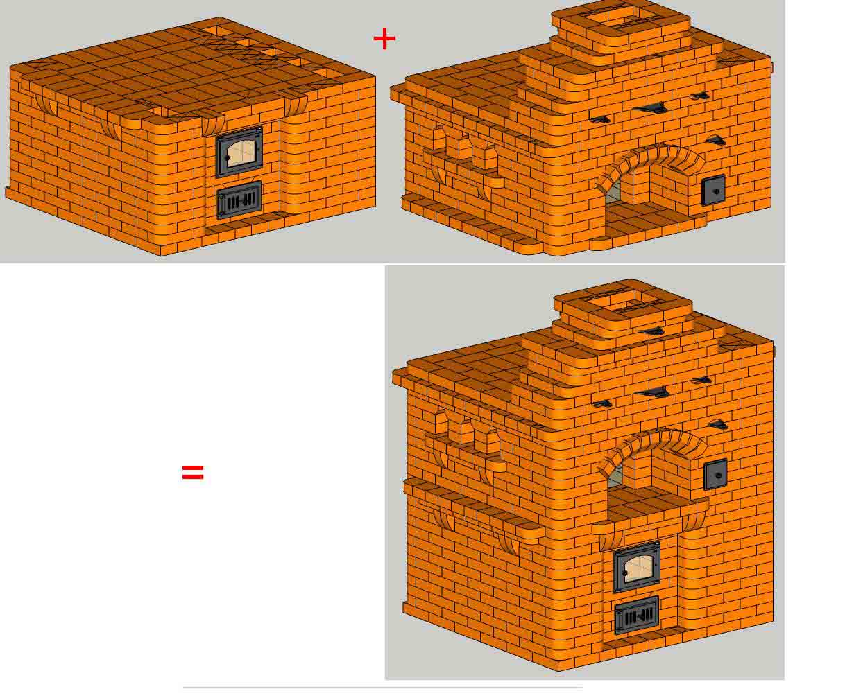 У него, образно говоря, две независимых печи (русская и отопительно-варочная) поставленных одна на другую.