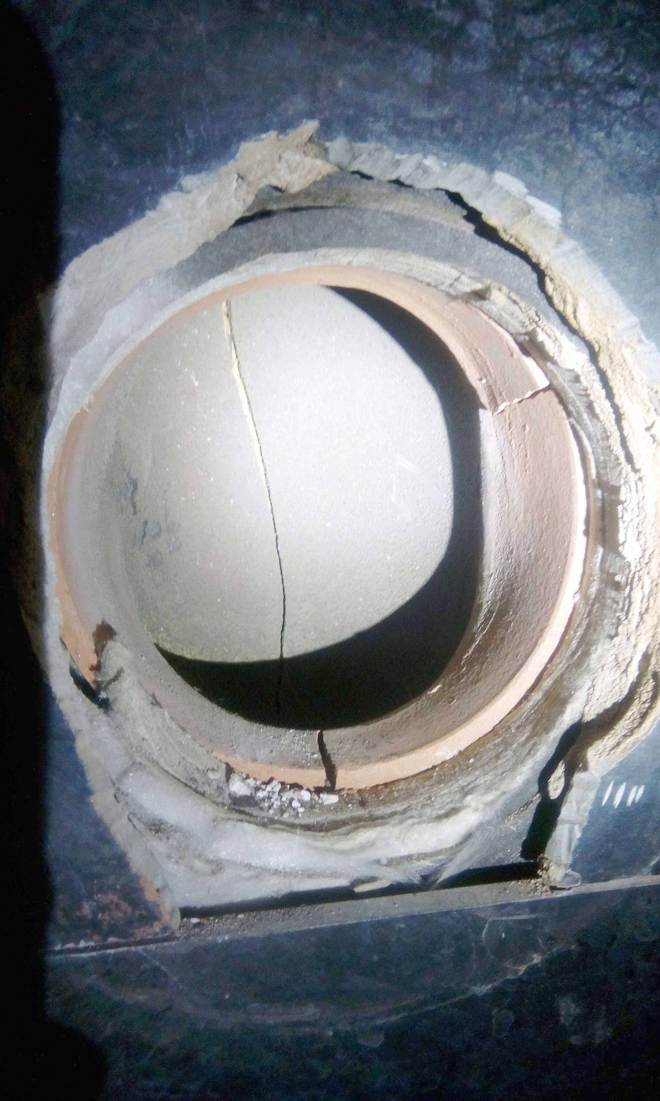 Продолжение : Далее проходки через потолок. Там где и произошло возгорание. Там и трещина образовалась в керамической трубе.