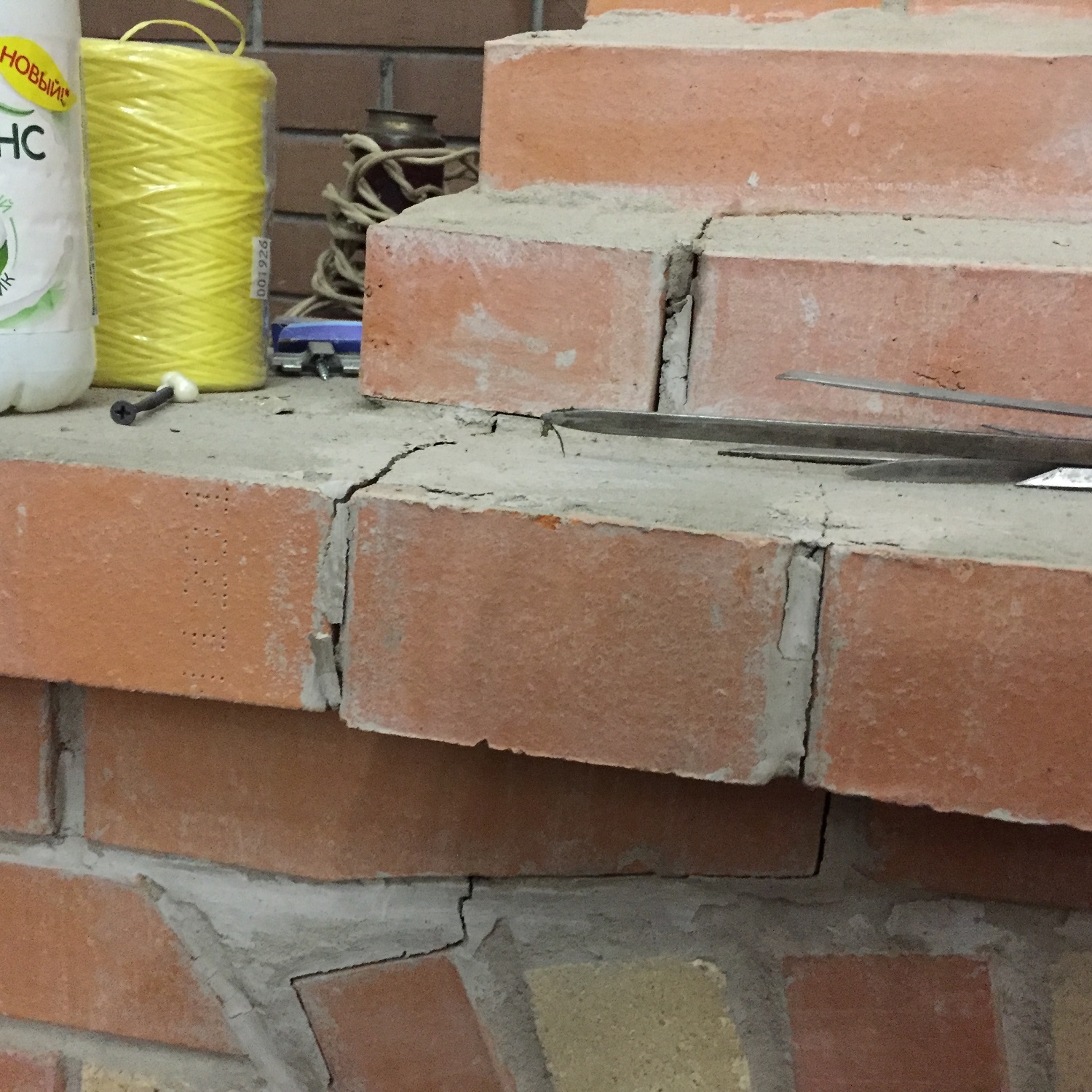 В том случае, если эти требования нарушены, то есть риск , что конструкция треснет, см рис ( перевязка кирпичей, весовая и тепловая нагрузки не разнесены).