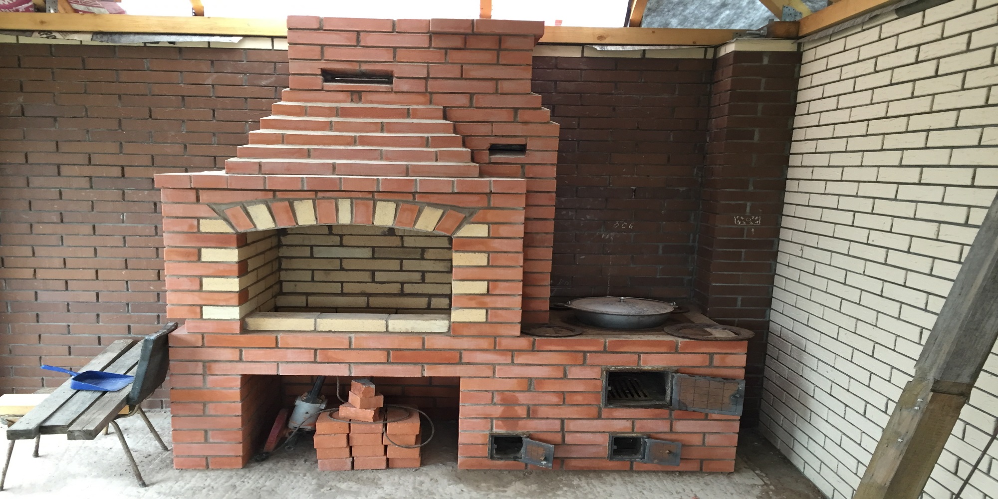 Исполнение печи в целом планирую такое, хотелось бы еще вытежку над казаном (готовил пару раз плов, испарения из под крышки казана разлетались по беседке, заволакивая пространство вкусным туманом.