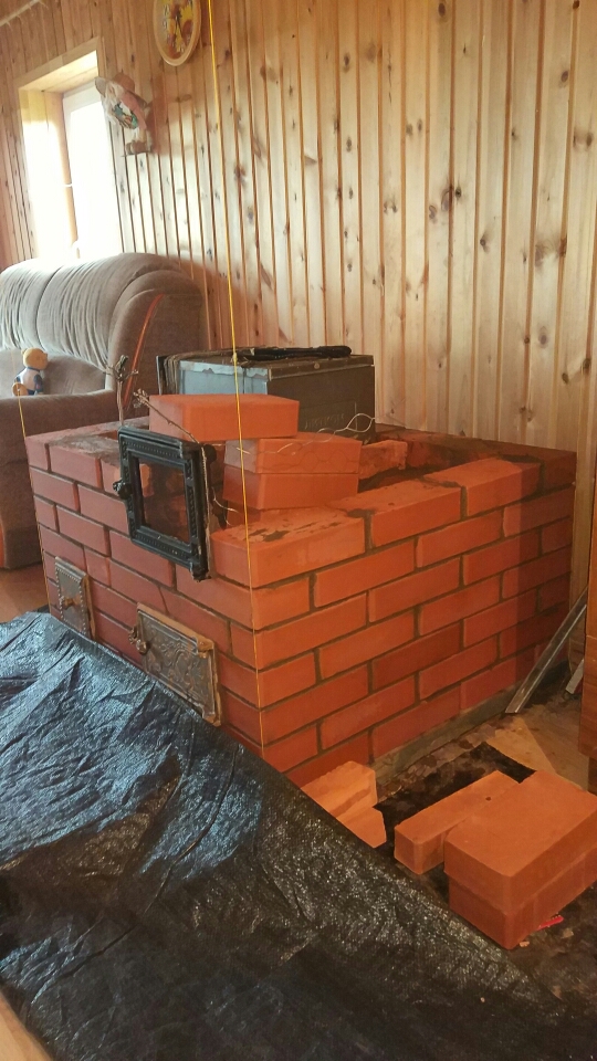 | Расстояние от стены до печи 250мм. Печь топлю сейчас стена особо не нагревается. Кирпич нагревается сзади но рука терпит. Чего то напугали меня так!!! До этого печь стояла старая еще ближе к стене, 20см. |