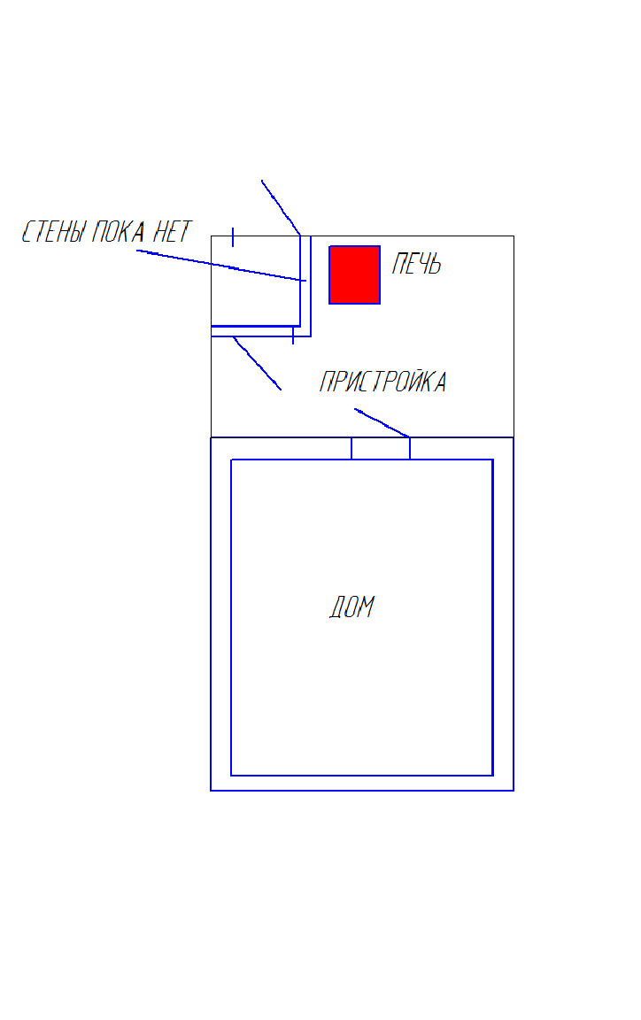 Печь по задумке должна отапливать пристройку. Но в нее хочу поставить котел, что бы отапливать бревенчатый дом уже водяным отоплением.
