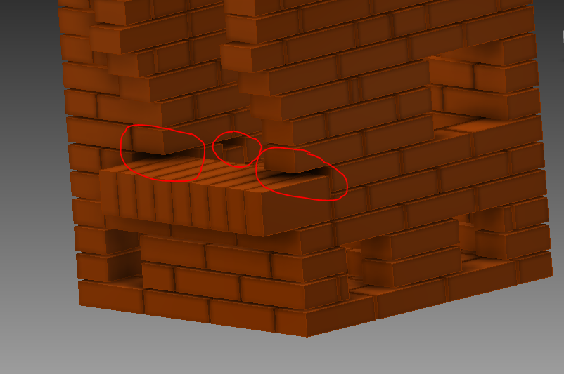 Вот как получается, если просто поставить кирпич на ребро. Шов слишком жирный. Я интересовался, можно ли этого избежать, применяя какой-то другой неизвестный мне кирпич, но теперь вижу, что нельзя. Надо чем-то забивать шов.