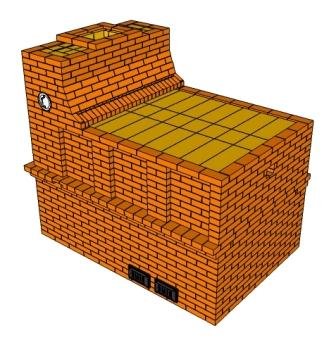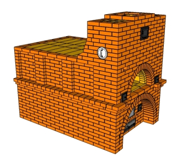 Русская печь с двумя горнилами и большой лежанкой. Горнило в подтопке –аналог конструкций топливников отопительных печей конца XIX начала XX веков. Конвективная системы –применены частично элементы устройства печей прошлого и позапрошлого веков.