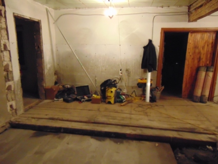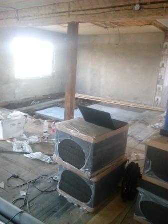Сделана стяжка по пеностеклу. На объекте инструмент в количестве 10-ти болгарок,4-х станков, Керхера для мойки кирпичей и много разныз прочих и необходимых электроинструментов. Также и различный ручной инструмент