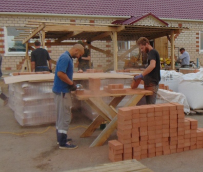 Кладка и заготовка деталей на полевом производственном участке продолжается.