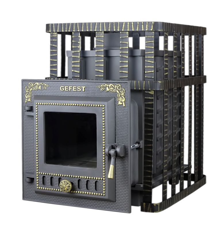 Смотрите из линейки чугунных банных печей с закрытой каменкой Этна - Шторм 18 (ДТ-4С) с толщиной чугуна 8 мм. или Везувий - Ураган 16 ковка (270)...чугун 12 мм.
