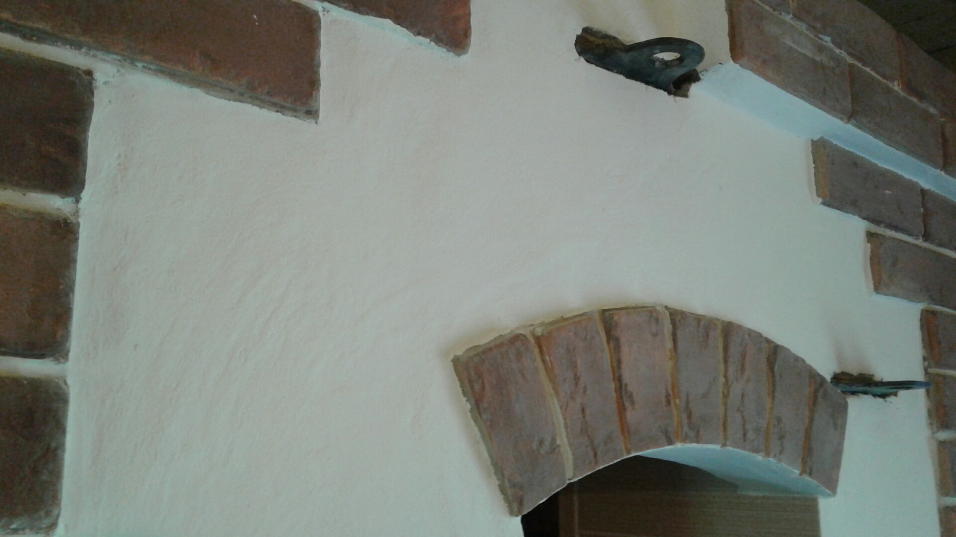 Наконец доделал, не прошло и двух лет. Всё выстоялось, не потрескалось и было завершено покраской. Фактура штукатурки была специально затерта мокрой тряпкой, типа раз плитка "старый кирпич", то пусть и штукатурка будет "старая".