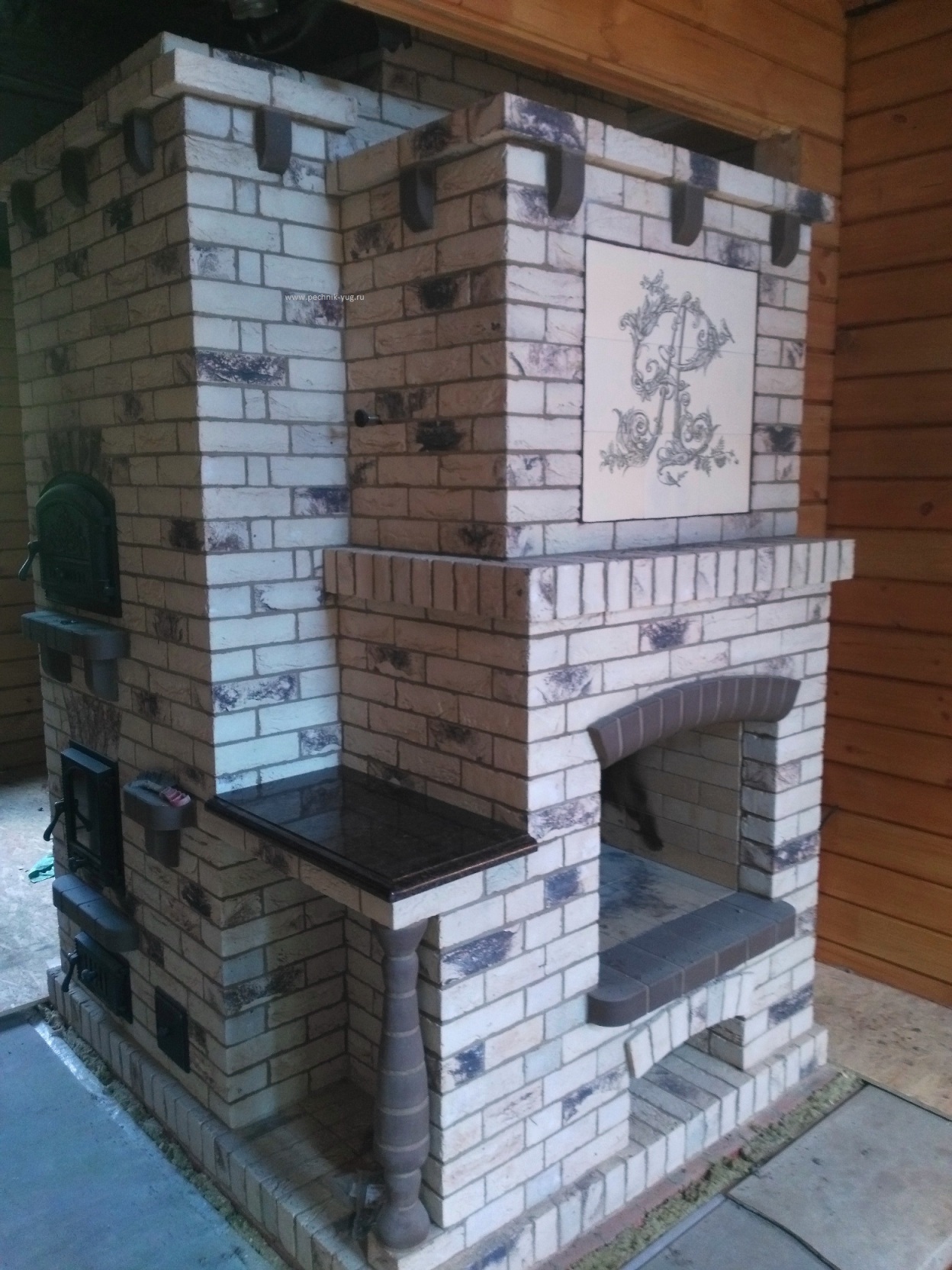 Отопительная печь с хлебной камерой, из кирпича ручной формовки