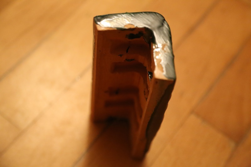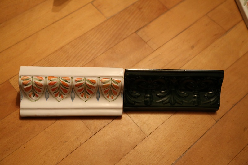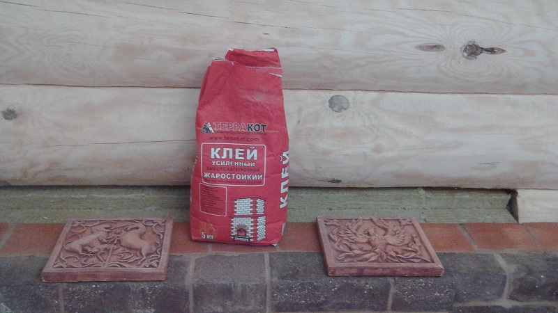 На банный портал приклеил два изразца или их имитацию на Теракот термо клей запелив в руной формовке паз под 2.5 см ставил без проволки .