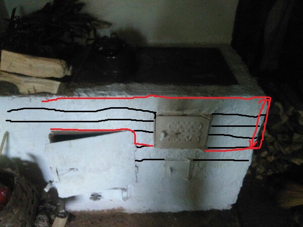 Добавил фото: черные линии это ряды кирпичей. Красным виделена топливная камера. |