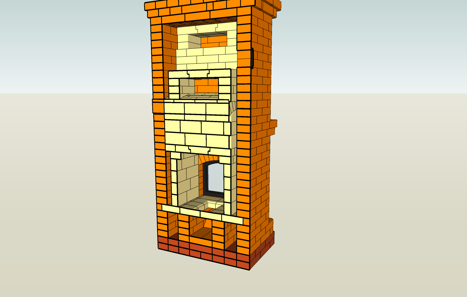 Переделываю печь в доме (120м), набросал свои мысли в скетчапе.