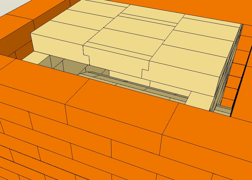 6. Перекрытие вверху.... вообще ни в какие ворота.. На шамотный сердечник в четверть опирается красный и сверху насадная труба.