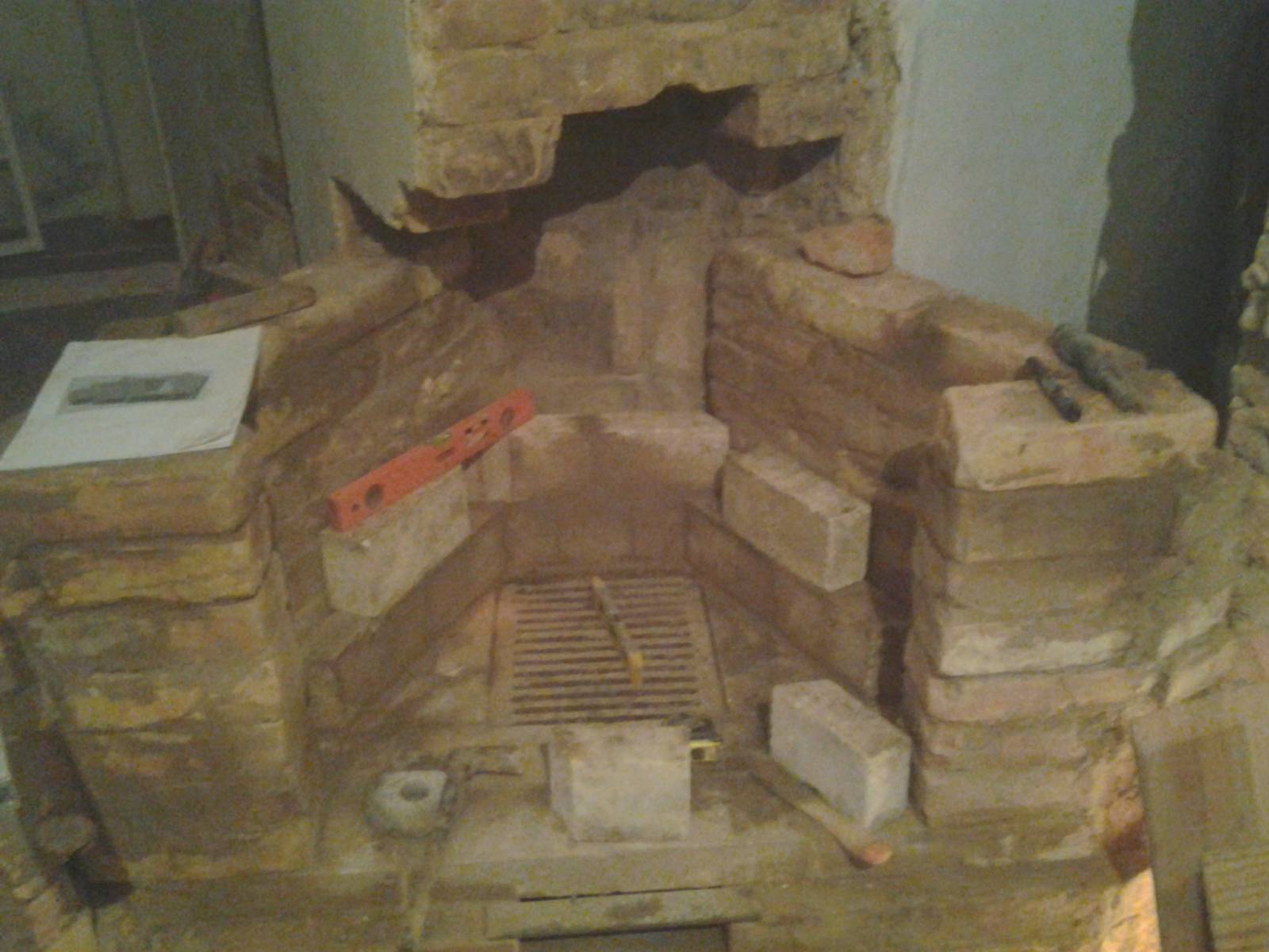 Доброго времени суток, приобрел дом, выложил печь, теперь хочу камин. В общем не знал я что и как пока не начал читать форумы, но уже начал встраивать камин в колодец коренного дымаря. Камин угловой, делаю сам, прошу помощи, так как лучше спросить как, чем переделывать. ниже скину фотки