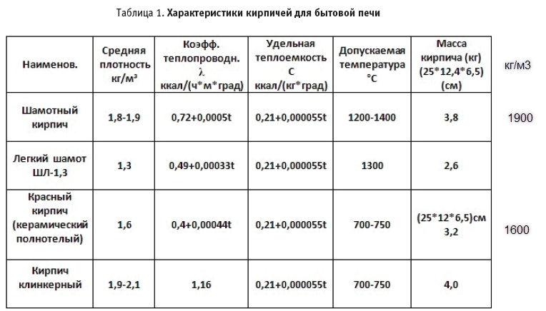 Автор десятка изобретений к.т.н. В.Шевяков в одной из своих статей дал характеристику кирпича, используемого в отечественном печестроение