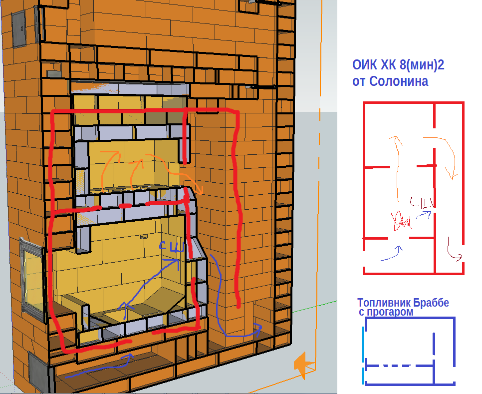 На картинке 2 видим, что шамотное ядро и нешамотные стены вокруг топливника можно сравнить с топливником Браббе с прогаром.