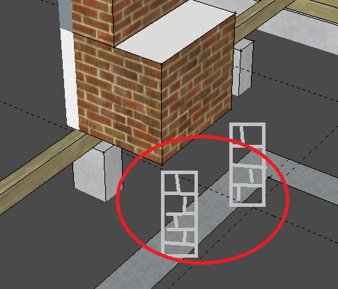 Обустройство правильного фундамента для печи крайне затруднено наличием столба-опоры и остатками старого фундамента. Расстояние между ними менее метра.