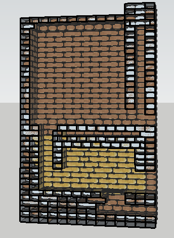 Между футеровкой и лицевой кладкой будет либо базальтовый картон либо воздушный зазор. Сверху топливника зазор (на порядовках этого нету, не хочется заморачиваться в программе).