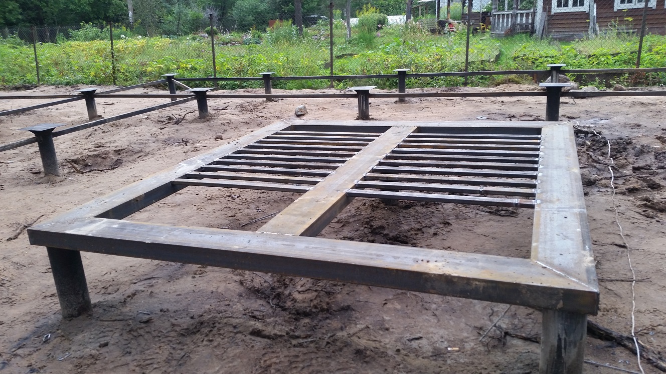 Я для печки вкрутил пять свай и обвязал их швеллером по периметру. Этот фундамент никак не завязан на остальную свайную конструкцию, но балки обвяза на нем лежат. На швеллер сверху лист металла и гидроизоляцию. Потом четыре ряда кирпича в межлаговом пространстве.