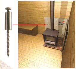 Крепится к сгораемой конструкции на винты с вентилируемым зазором в 30 мм.