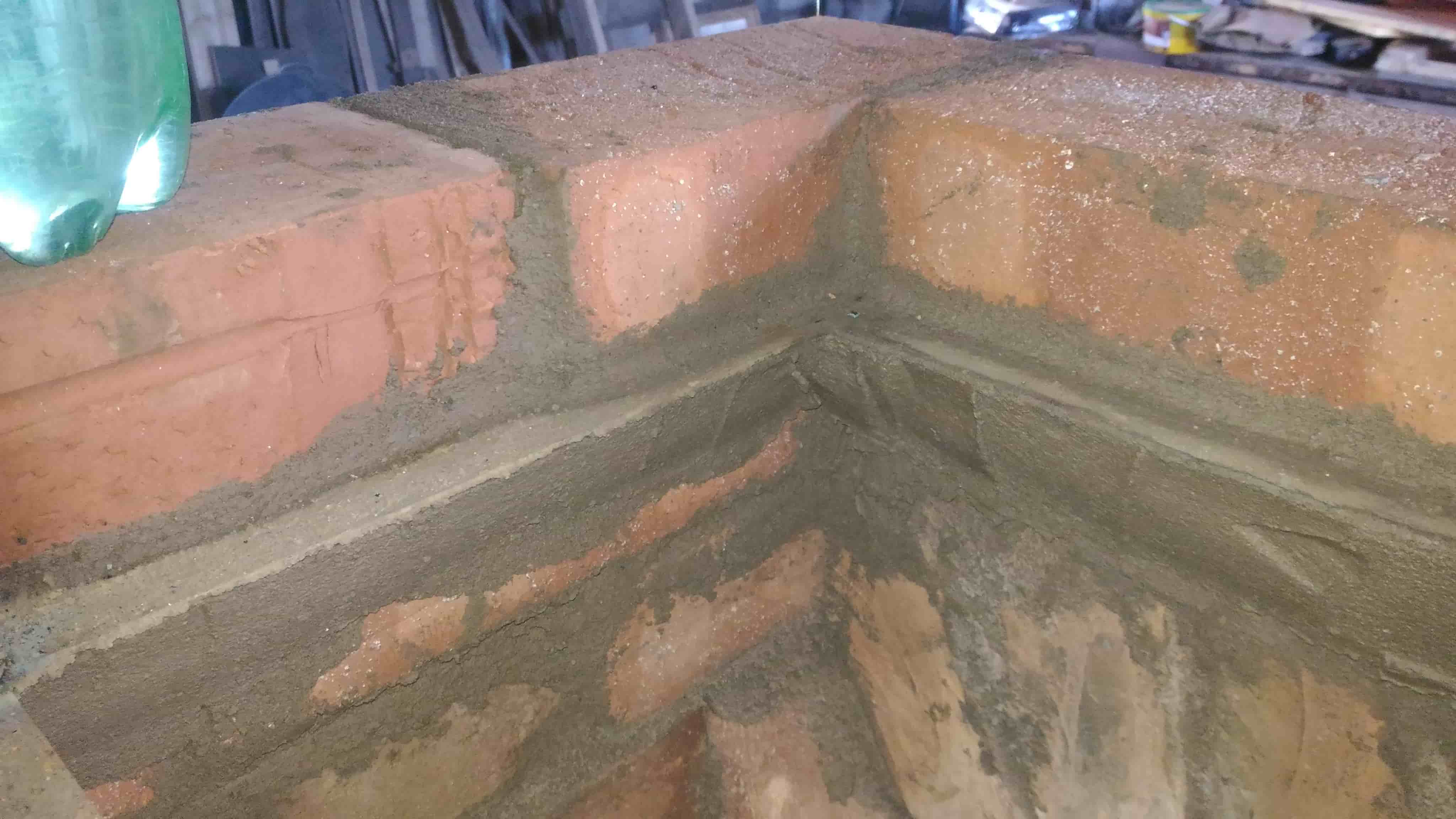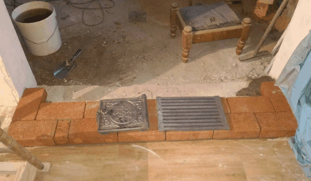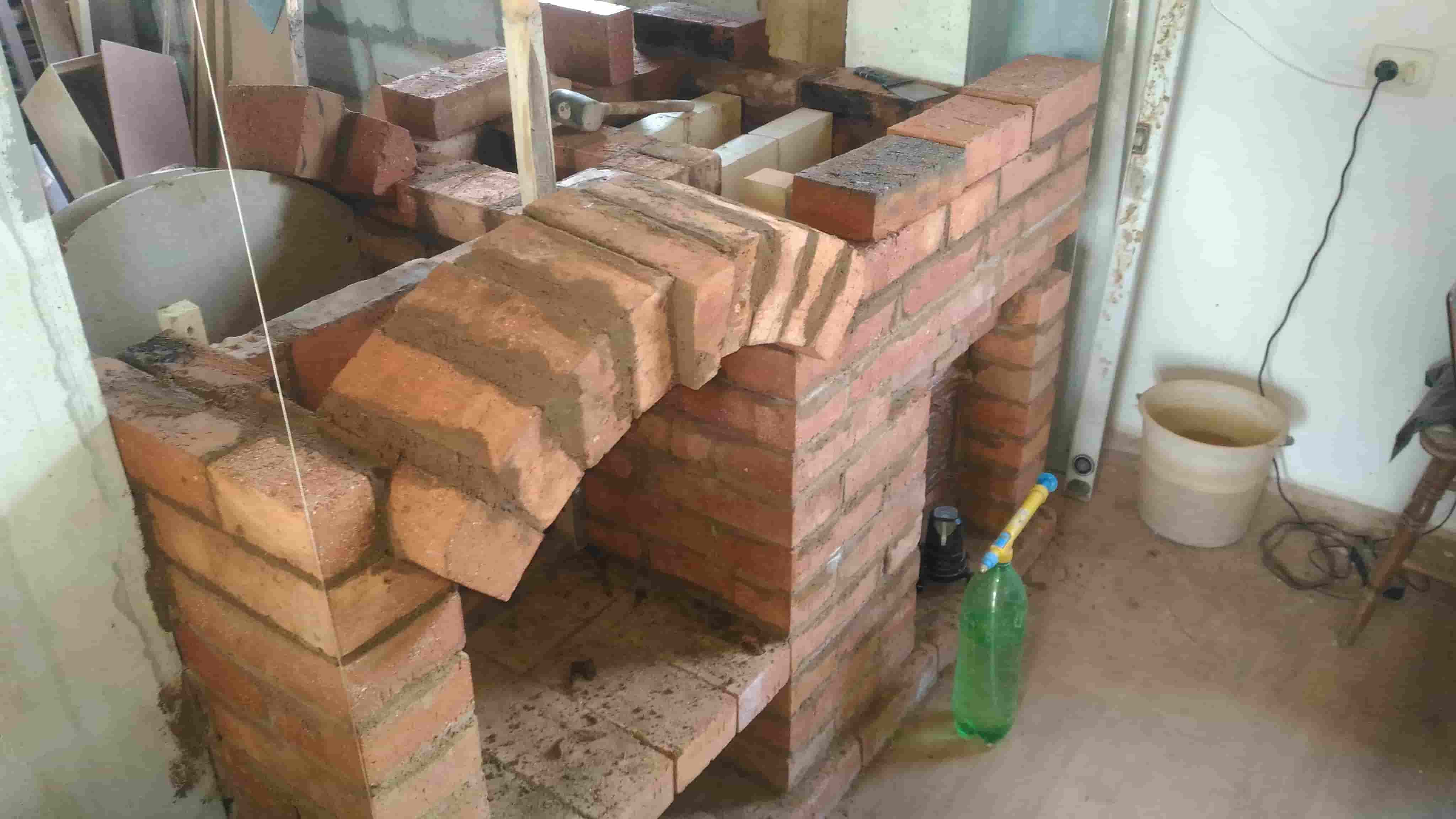 На фотографиях видно, что одно крыло будет опираться на кладку толщиной в 0.5 кирпича, нда... маловато. Посчитав нагрузку на арки портала камина и прикинув величину распорного усилия продолжаем работу дальше безо всяких усилений.