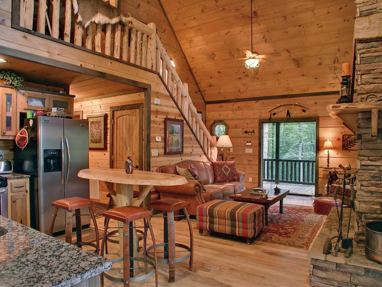 Что-то типа вот этого. Только лестница с левой стороны от коридора. А печь на месте столика с барными стульями.