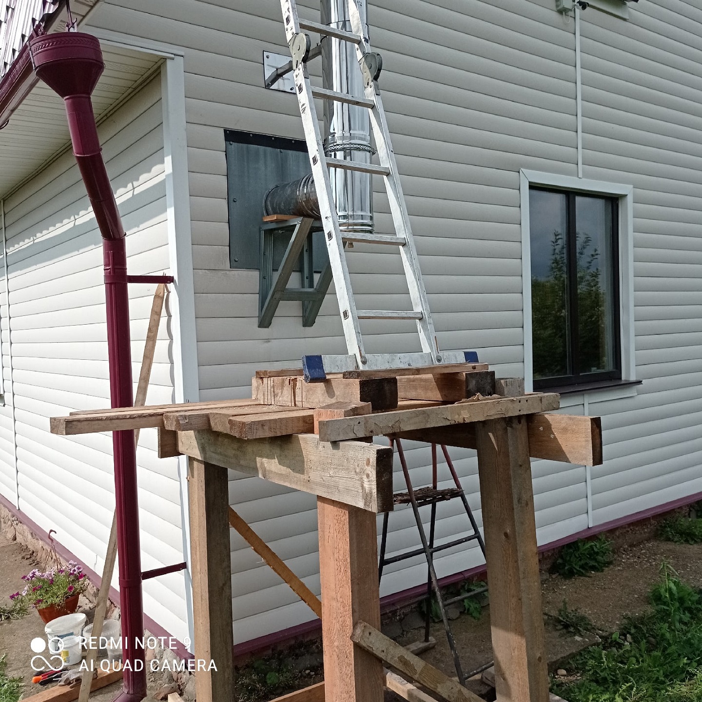Труба уходит через стену на улицу.
