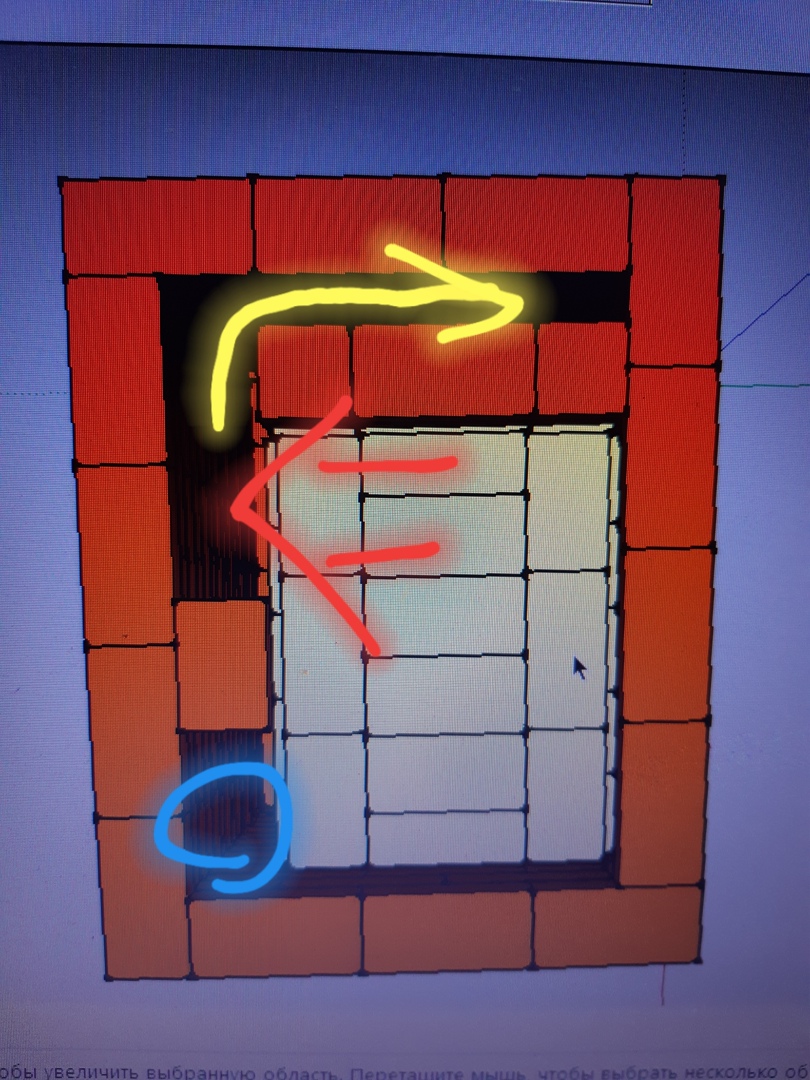 Будет ли при данной конструкции колпака прогреваться задняя стенка? Пойдут ли горячие газы по жёлтой стрелке, прежде, чем уйти в подъёмный канал (отмечен синим)?