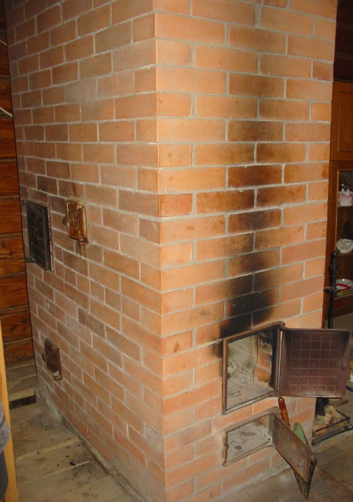 | вид с другой стороны. Подкопченость над топкой была до потопа (при растопке естественно немного дымила, но это нам не мешало). После потопа печку около месяца просто проветривали, потом два раза топил несколькими щепками... |