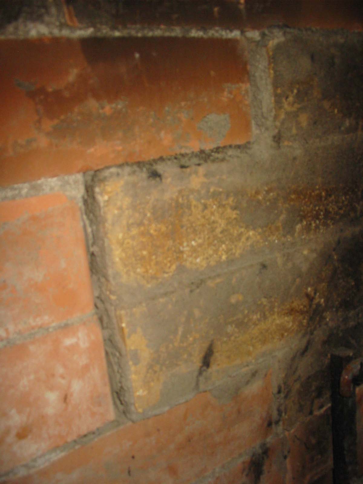 | вид задней стенки камина. Желтые кирпичи выступают (наверное на 1 см). Раньше (до потопа) такого не замечал... |