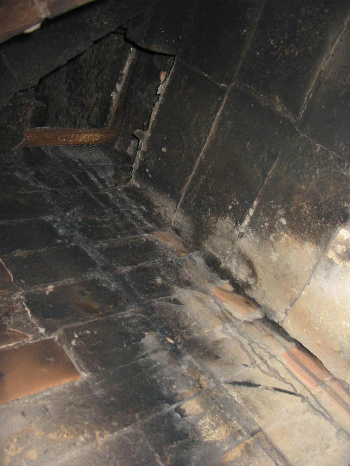 | Вид в трубу камина. Видны потеки |