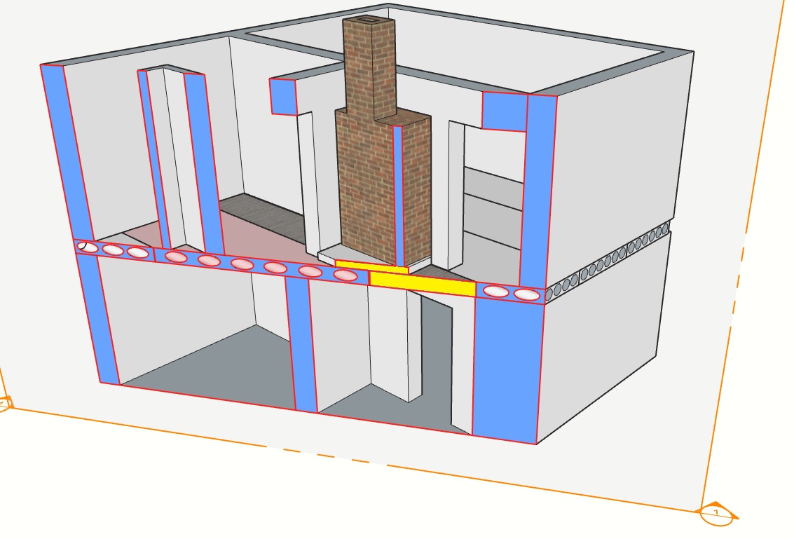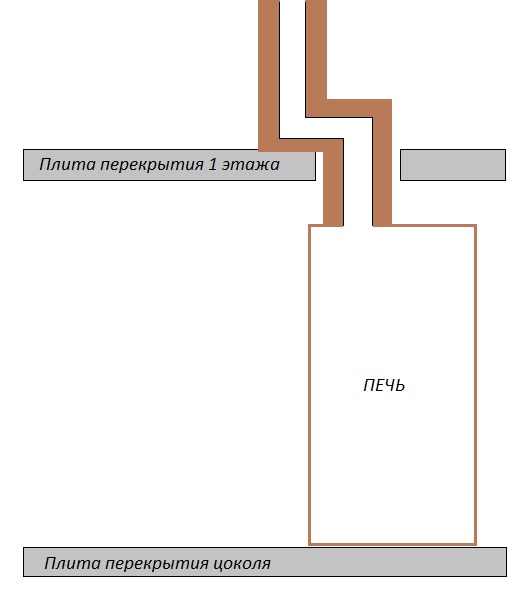 Имеется капитальный дом, 3 уровня:цоколь, 1й и 2й этаж, чердак. Все уровни перекрыты плитами ПК. Первоначально в цоколе планировалась котельная, но по мере строительства проект был пересмотрен и все отверстия под дымоход были залиты бетоном. НО! после сдачи дома, оказалось, что до ввода, обещанного, газа еще много лет. Поэтому было принято решение поставить печь (4,5х3,5). Зимой жилым будет только первый этаж.