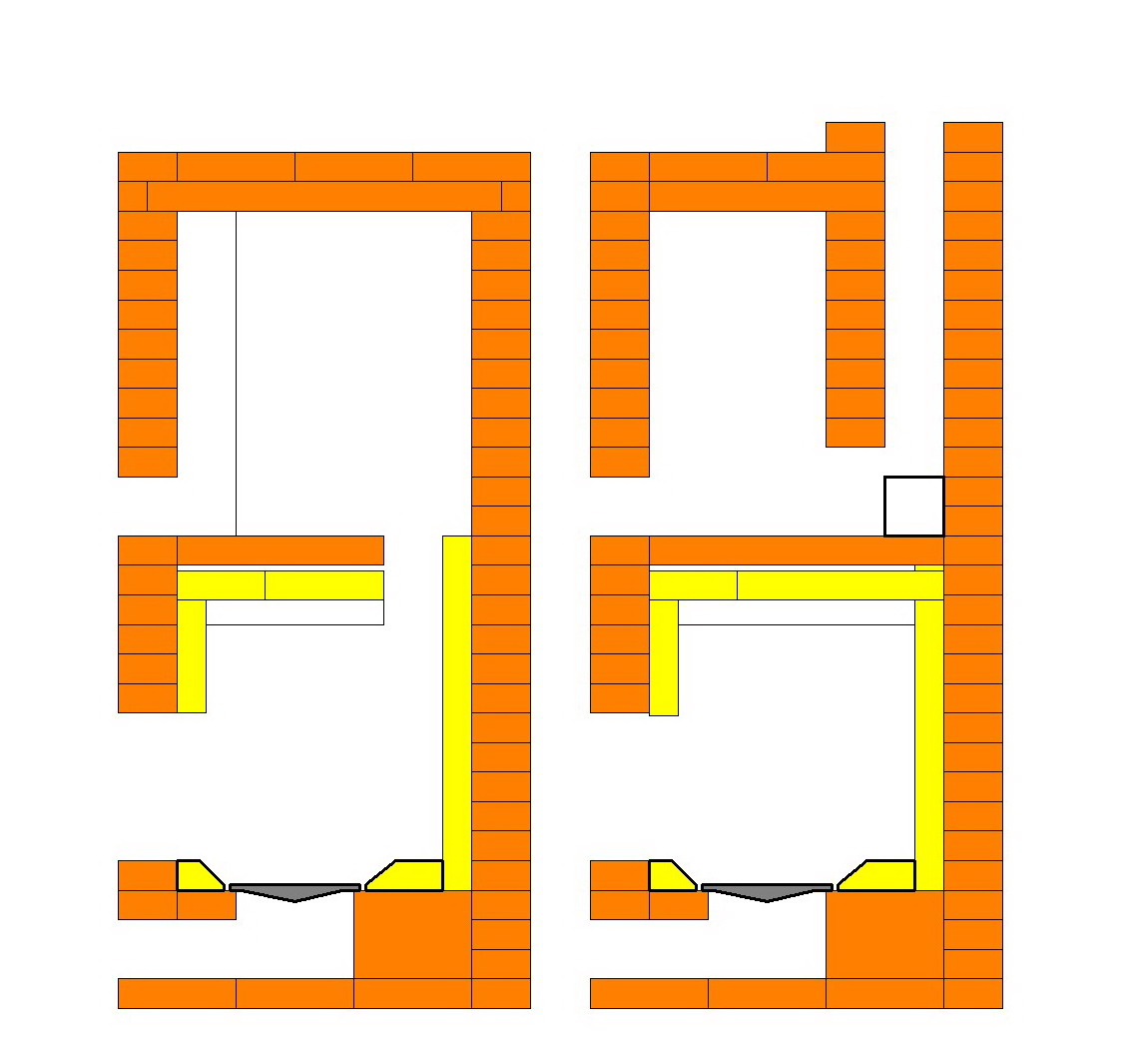 когда труба сзади удобно верх делать ввиде кругового колпака. И перегородок менше а значит выпускать кирпичи менше.... тяга лучше..
