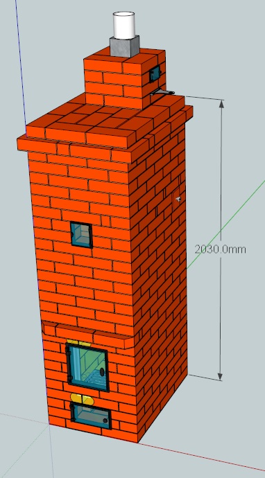 Собственно предисловие есть старый кирпичный деревенский домик 6х8, там раньше стояла голландка которая благополучно была разрушена и заменена на металлическую Бутаково. Сегодня в связи со спецификой топления длительного горения некоторые не могут так топить им надо по русски что бы кинуть дрова поджёг и всё поэтому встал вопрос в кирпичной печи. После изучения интернета понял что для меня подходит ПТОУ-2500, единственное что хотелось немного увеличить ее и сделать отдельно шамот и красный кирпич. Подвигал тут кирпичи в SketchUp и вот что получилось.