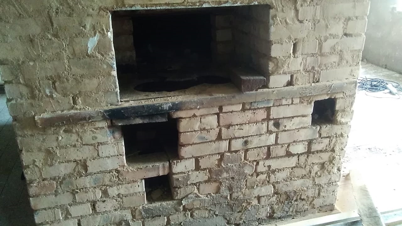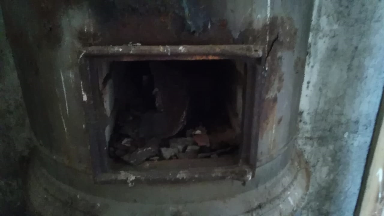 В нашем доме три печи - русская с подтопком и две круглые металлические голландки. Печи были сложены в начале 1990-х, но дом простаивал и ими не пользовались. Мародёры повытаскивали вьюшки и выломали дверцы.