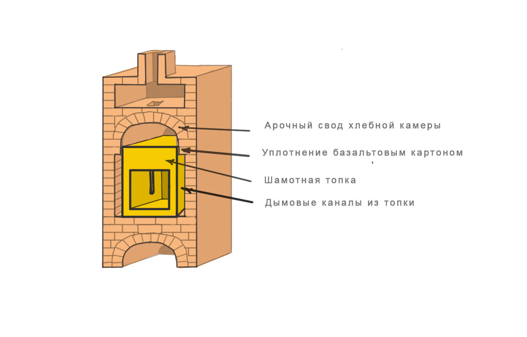 Ещё такой вопрос каким образом лучше сделать дымовые каналы из топки в хлебную камеру? Я придерживаюсь того чтоб эти каналы сделать в боках арочного свода, для того чтоб , под хлебной камеры остался цельным , так как на него буду ставить подносы с всякого рода выпечкой, и также можно будет прямо в ХК жечь дрова как в русской печи на поду , без колосника .