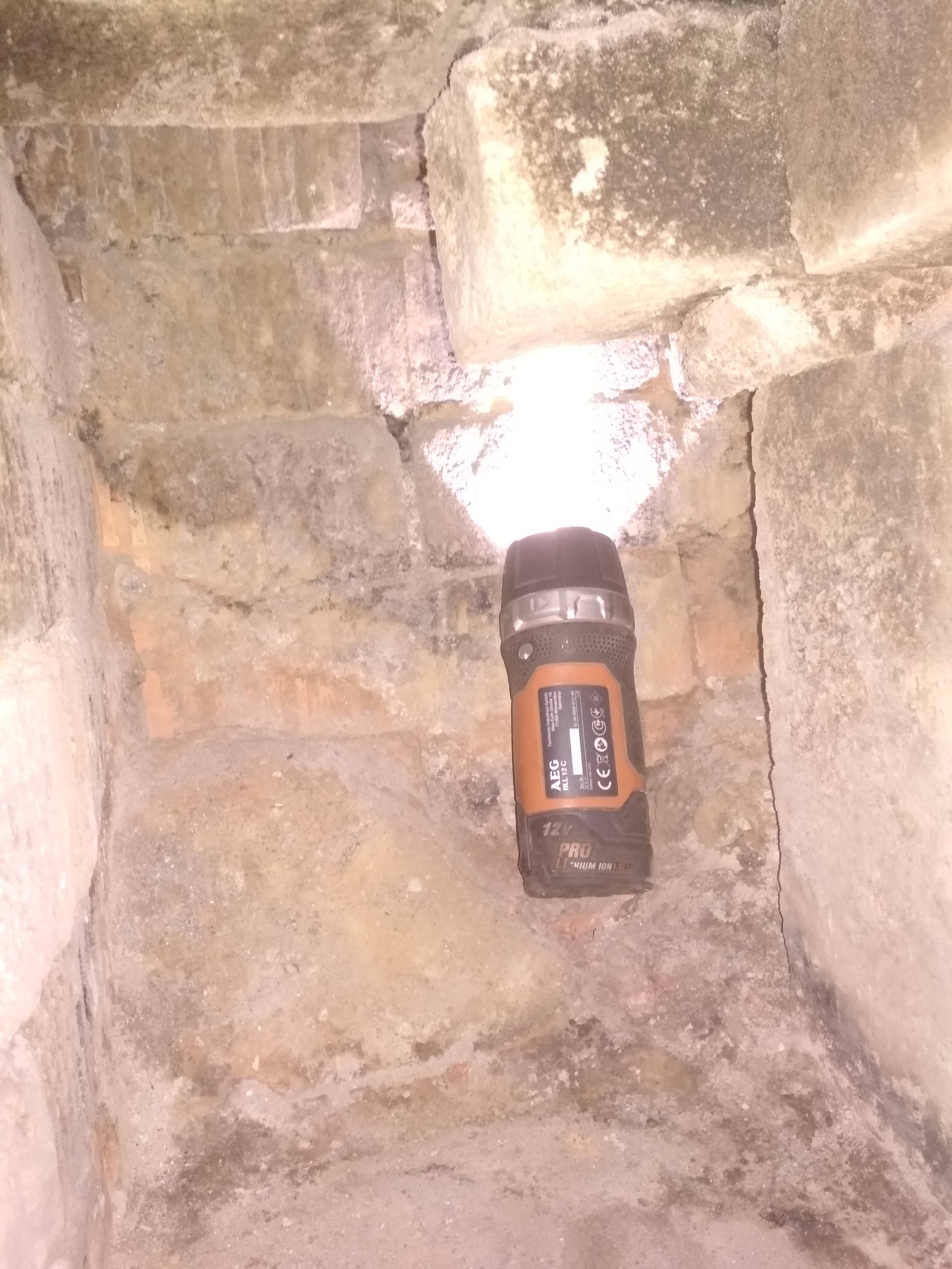 3. а вот подпереть его вертикальным кирпичем стоит. Сначал кусок внизу а потом отмерять от целого и вклинить(там всего около 30см) но без фанатизма бо кладка выше уже потрескалась.