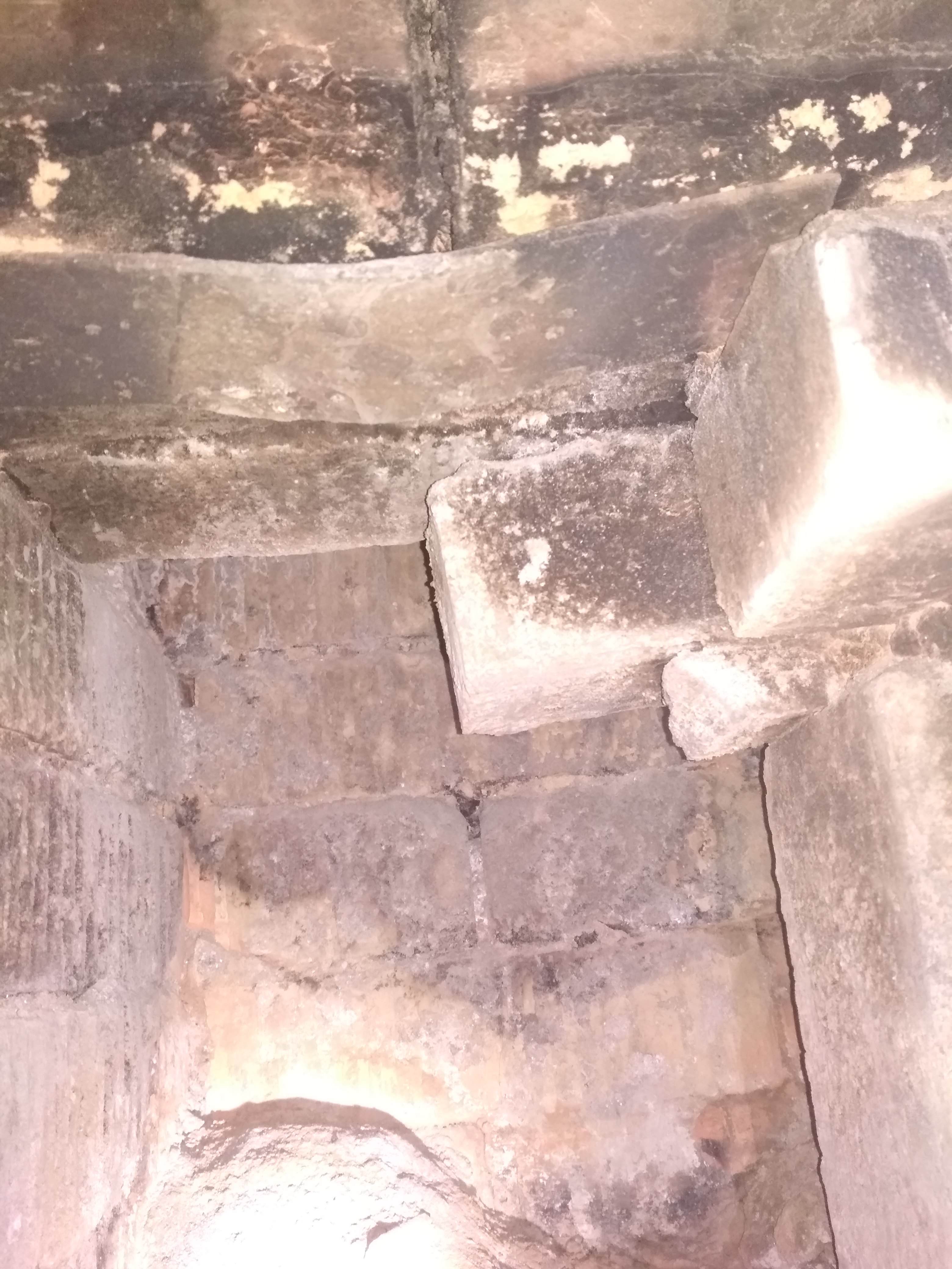 3. а вот подпереть его вертикальным кирпичем стоит. Сначал кусок внизу а потом отмерять от целого и вклинить(там всего около 30см) но без фанатизма бо кладка выше уже потрескалась.