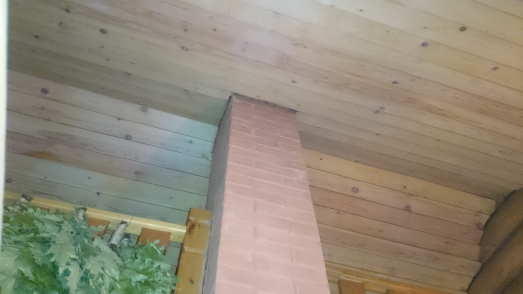 | Обшивка потолка, тоже возле трубы... |