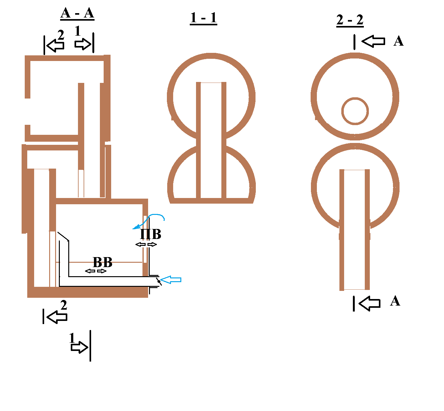 При этом зоной горения будут первый райзер и первый колпак, зоной догорания второй райзер и свод второго колпака...