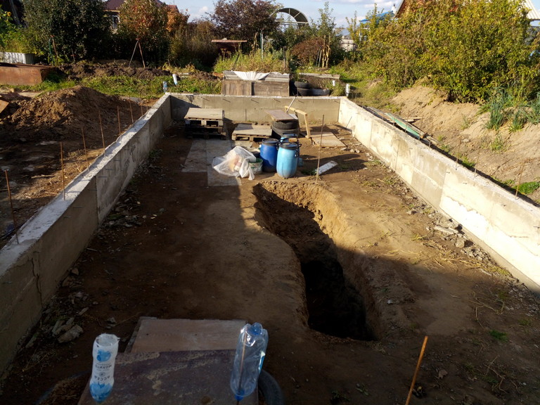 На данный момент имеется только котлован с ленточным фундаментом.