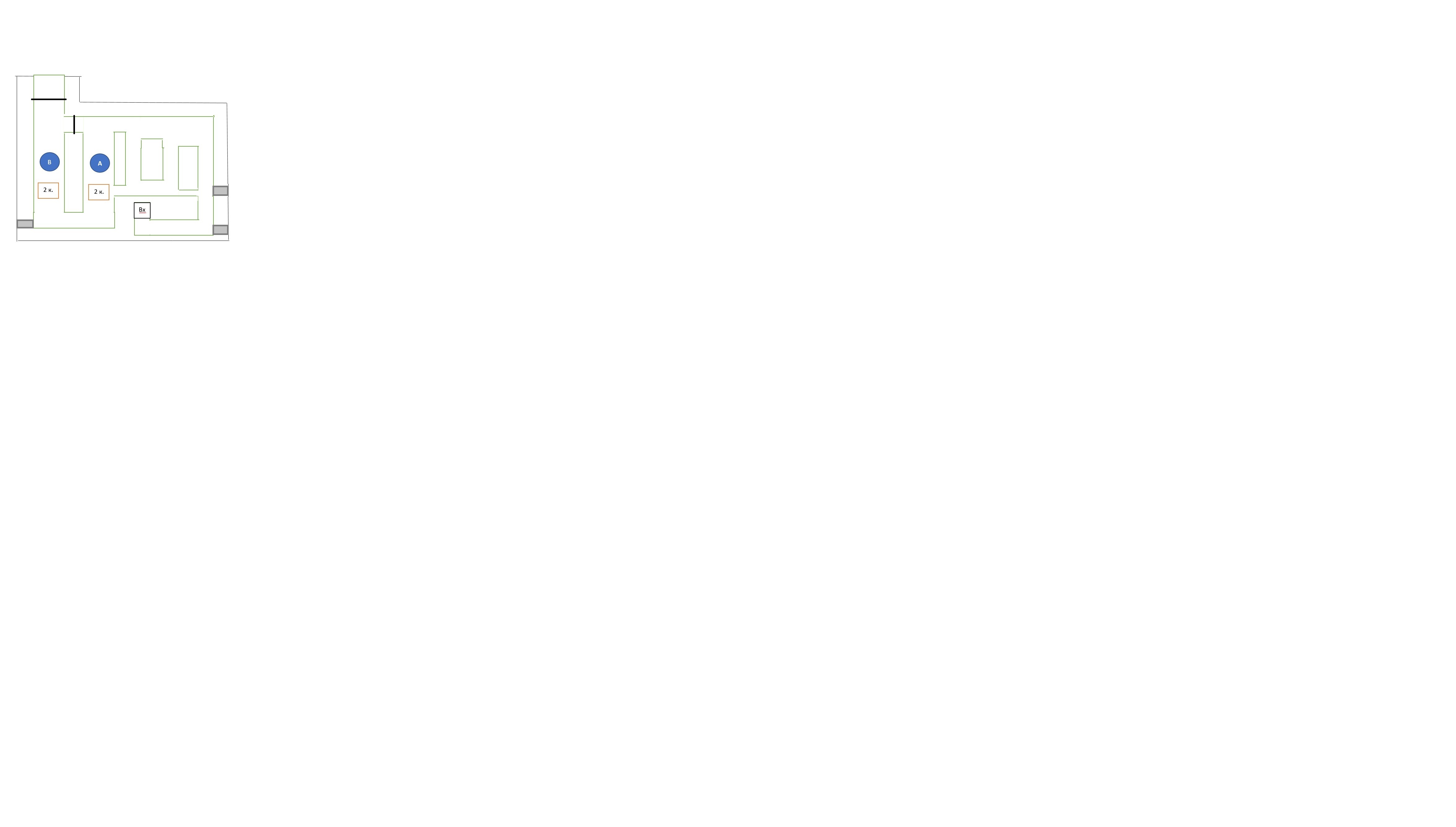 Все каналы в 1 кирпич, каналы А и В в два кирпича. Вход (Вх) расположен именно так, и фактически в 1/2 кирпича. Ко входу пристроена металлическая плита.