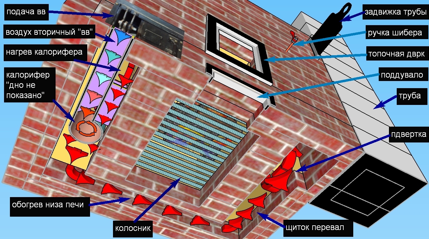 Сейчас сечения установлены для сжигания дров и ВВ действительно хватает, а вот для угля, а тем более резины ВВ приходится нагнетать. Не хватает концентрации кислорода, захваченного по описанному механизму.